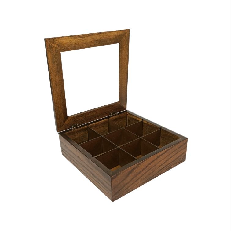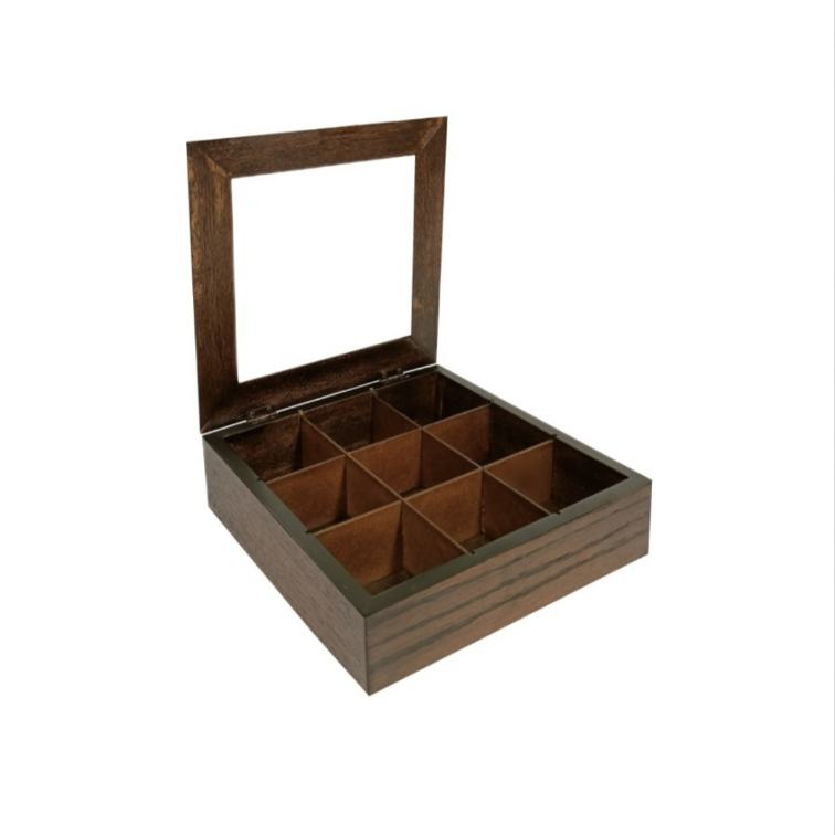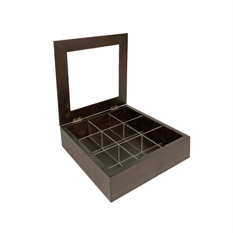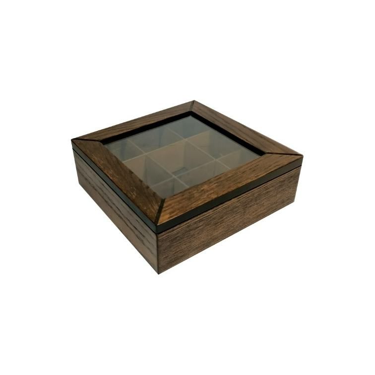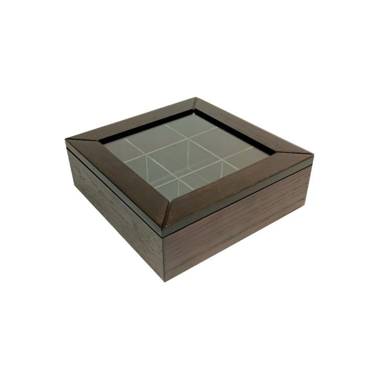 Wooden Glass Tea Box – Dark Walnut- 23x23x8cm – Flow Collection