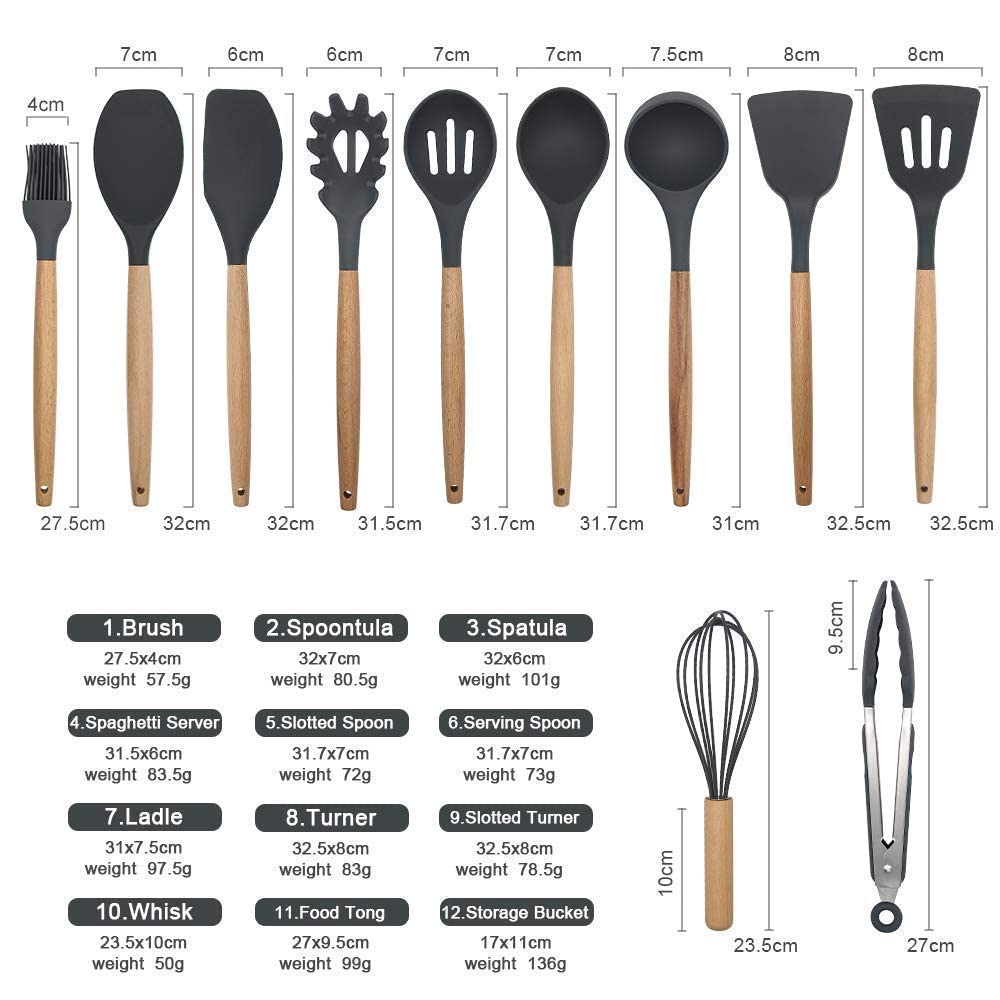 Silicone kitchen utensil set 11pcs (Grey)