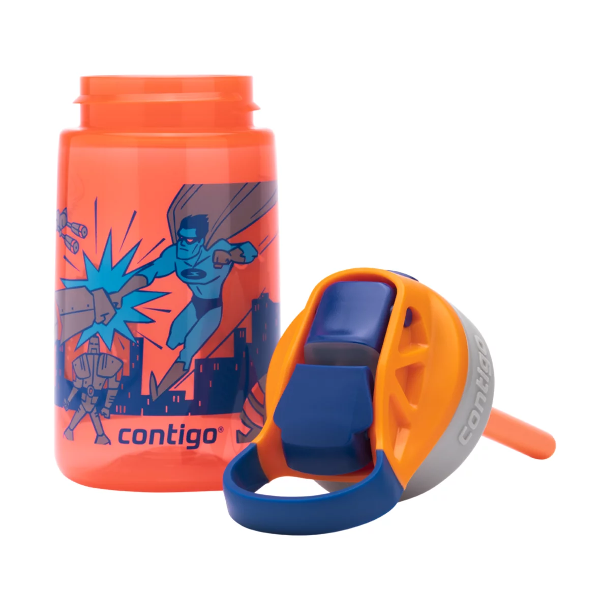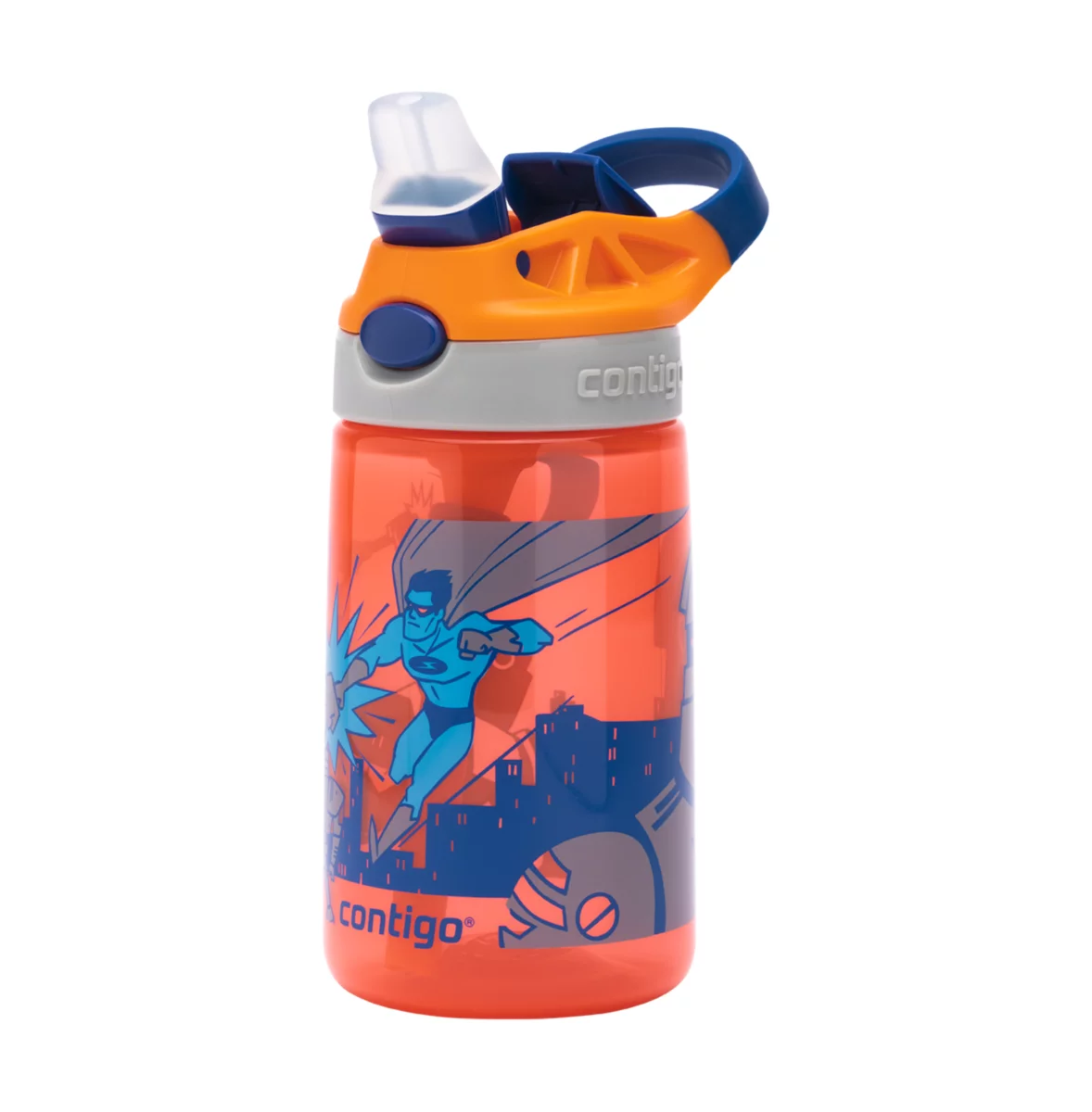 Contigo Gizmo Flip AUTOSPOUT™ Kids Water Bottle, 420 ml ( Nectarine Superhero)